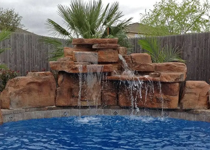 Powerful, but tranquil at the same time, the 4 FT Double is our most popular waterfall kit. This double waterfall is perfectly scaled for a swimming pool because it is wide and has several layers that create a sheet waterfall on the left and a cascade on the right. Multiple base pieces allow it to be installed on a radius or corner. Now available with built in sleeves for LED lights at every level.