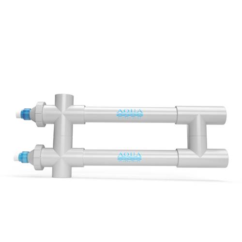 Ultraviolet Sterilization is a proven, dependable, and effective method for controlling and eradicating algae spores, bacteria, and protozoa in the water source. Ultraviolet alters or disrupts the DNA and RNA of target organisms. The targeted organisms can be eradicated effectively without any harmful residuals by properly implementing an Aqua Ultraviolet disinfections system in-line. Aqua's patented slim line lamps last an industry high of up to 14 months of continuous operation; no other lamp on the market lasts as long. These lamps have a 99.9% effective kill rate. Lamp changes are done easily from one end with the EZ Twist Cap. Aqua manufactures its own lamps for assurance of quality and longevity, and their UV stabilized housings carry a lifetime warranty.
