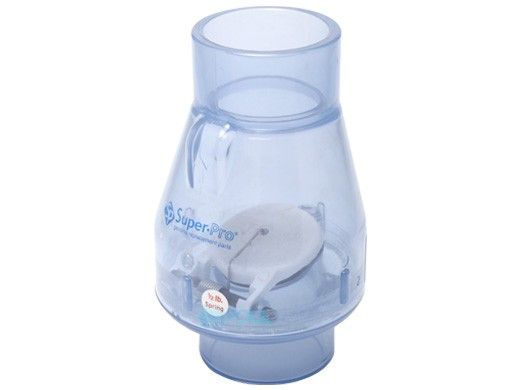 Super-Pro SP0821-20C 2"S Clear Swing PVC Check Valve with 0.5 lb Spring. The "Smart" Check provides you with reliable back-flow prevention without the inline restriction of a conventional check valve. With the use of high powered magnets, the "Smart" Check valve remains in the closed position to 2 PSI, opening fully when 2 lb. line pressure is exceeded. The"Smart" Check has a Spring-Loaded gate mechanism allowing the valve to be installed in any orientation.
